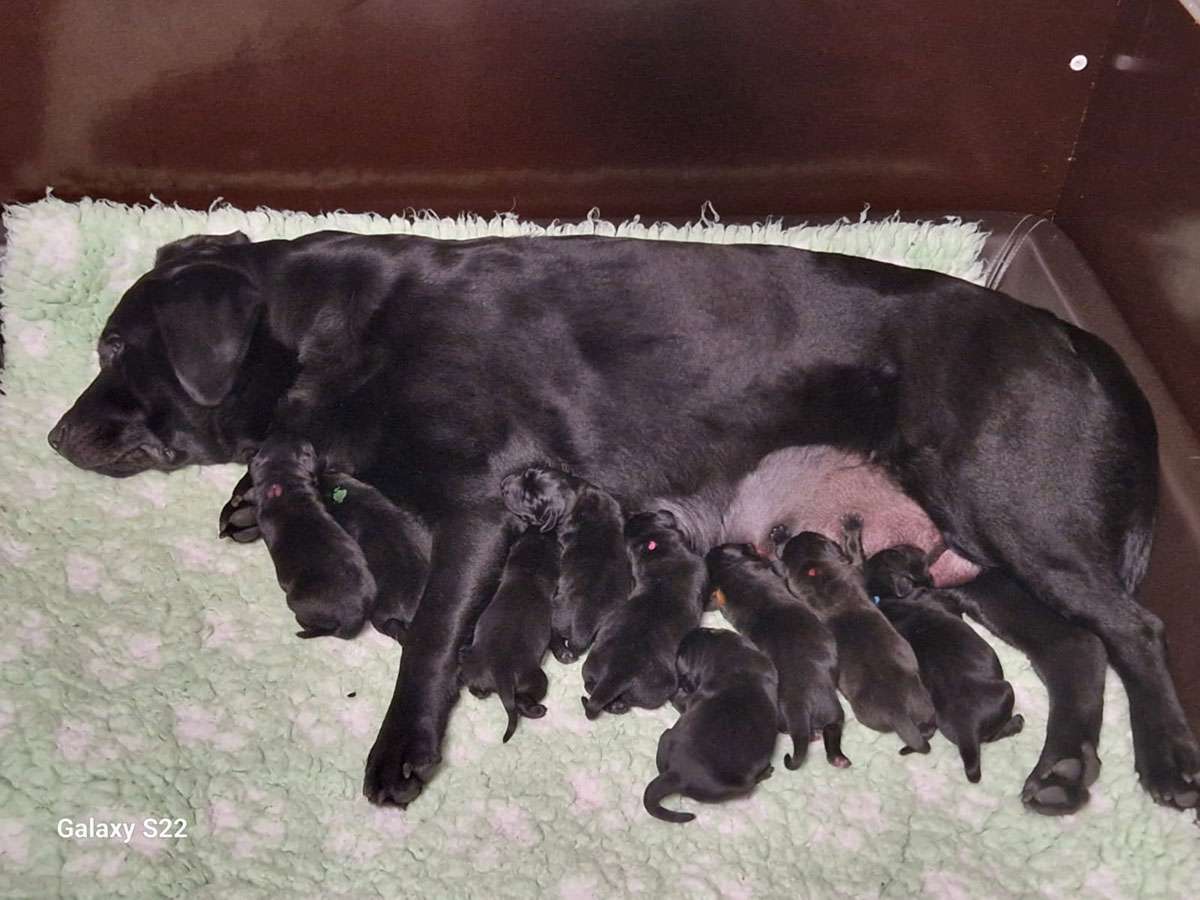 Gestern hat unsere Sansa (Faithful Paw’s Starlight Express) völlig unkompliziert, 6 gesunde Welpen geboren. Girlspower: 5 schwarze und 1 gelbes Mädchen. Vater ist Torun (SUN RAIDER BELLA MARE).